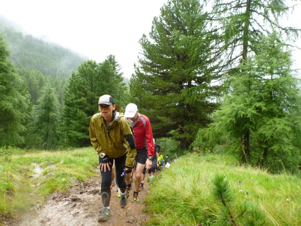 In Valzana verlassen wir die Bergstraße, es geht nun sehr steil auf einem Trail aufwärts. Dreckig und aufgeweicht ist der Untergrund. Gutes Profil an den Schuhen ist hilffreich, Trailschuhe noch besser.