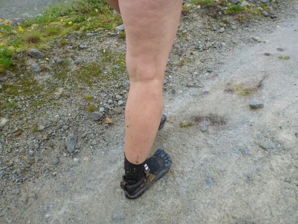 Wir sind keine 15 Minuten unterwegs, da nehmen die Steigungsprozente deutlich zu und die ersten marschieren bereits. Wir gewinnen schon viele Höhenmeter, die Aussicht nach unten auf Bergün ist trotz des Scheißwetters aussichtsreich. Immer weiter führen die nun schmaler werdenden Wege bergauf. Mitunter müssen wir über Steine, Wurzeln und Sumpflöcher springen. Dann zwickt mich etwas an der Wade. Ich glaube, ich bin an einem Dornenstrauch hängengeblieben. Da das Ziepen nicht aufhört, schaue ich nach unten und entdecke eine Vespula germanica, wie sie gerade ihr Hinterteil zum Stich ansetzt. Selbst durch den Kompressionsstrumpf lässt sich das Mistvieh nicht aufhalten. Ein Schlag, und ich bin zumindest für den Augenblick schmerzlos und das Tier hinüber.