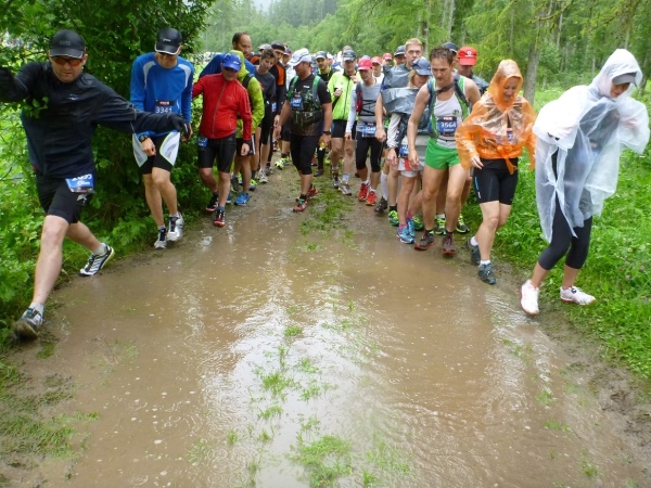 Ich glaube, die meisten haben sich mit einer Regenschlacht abgefunden, denn keiner mosert über die Bedingungen. Stattdessen lassen sich die Teilnehmer leicht motivieren. Du brauchst bloß jemanden die Kamera entgegenhalten, schon kriegst Du ein Lächeln und Lachen zurück. Und dann kommt wieder die Musik von Vangelis, zu der wir losgelassen werden. Hektik ist da nicht zu erkennen, alle traben langsam an und versuchen in ihren Rhythmus zu kommen.