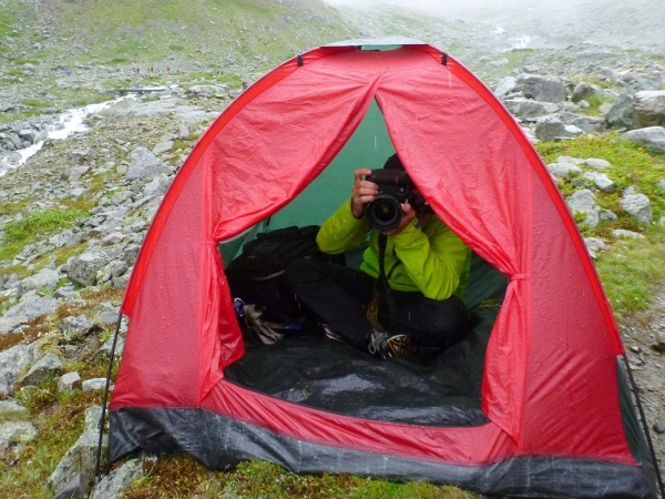 Die Fotoarbeit gestaltet sich für mich nicht leicht. Denn weiterlaufen und abdrücken ist nicht. Ich würde an der nächsten Wurzel stolpern und auf die Schnauze fliegen. Außerdem muss ich häufig das Objektiv trocknen. Denn schon ein Tropfen kann ein Bild versauen.