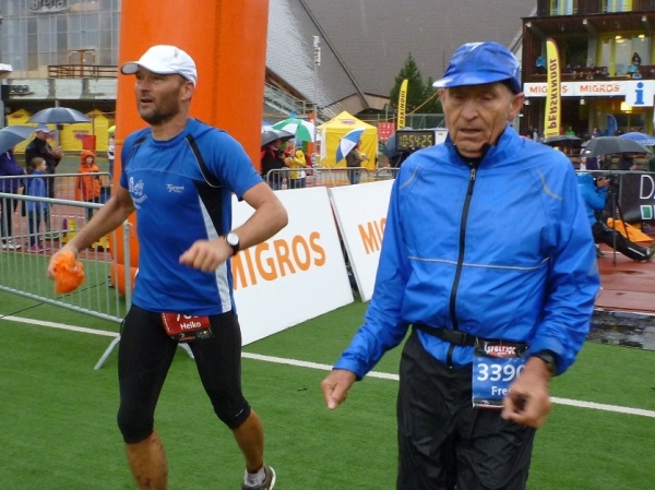 Der letzte Kilometer geht nach Davos hinein, über die Landwasser hinweg und unter der Bahnlinie durch. Die letzten zwei, drei Läufer muss ich noch auf der Talstraße überholen, und dann kommt die Kür: Kinder abklatschen, Winken, Jubeln und ein bayerischer Urschrei auf der Tartanbahn, dann ist er geschafft, der K42. Gänsehaut. Stolz. Wenig Schmerz.