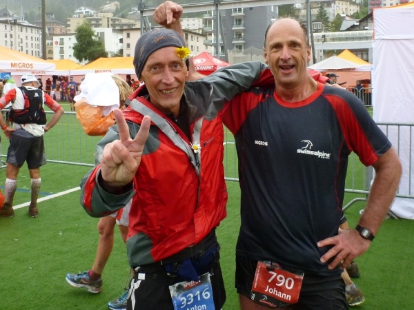 Ich habe es im Ziel anderswo schon länger ausgehalten. Heute warte ich nur kurz, mache von den glücklichen Teilnehmern ein paar Bilder und dann kommt Johann. Wir umarmen uns, lassen uns die verdiente Medaille umhängen, holen das T-Shirt und dann (endlich) das isotonische Getränk mit Hopfengeschmack.