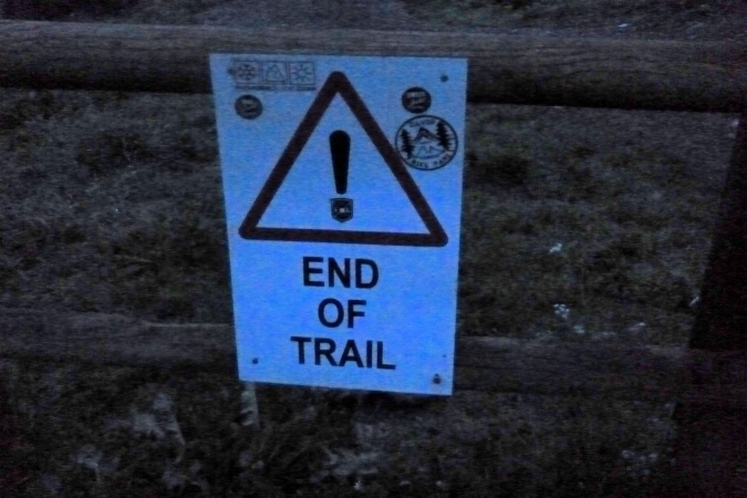 Am Posten dann die Zeitnahme. 11 km to go. Es ist knapp halb 5 in der Früh und nun ist mir alles wurscht. Ab in den Wald, kurvig und wellig, eigentlich ein Trailtraum. Der Morgen beleuchtet allmählich die Wege vor mir, und der Laufschritt setzt wieder ein. Dann – unglaublich - das 5 km-Schild direkt vor mir! 80 hinter und 5 vor mir! Rosa Wolken am Himmel!