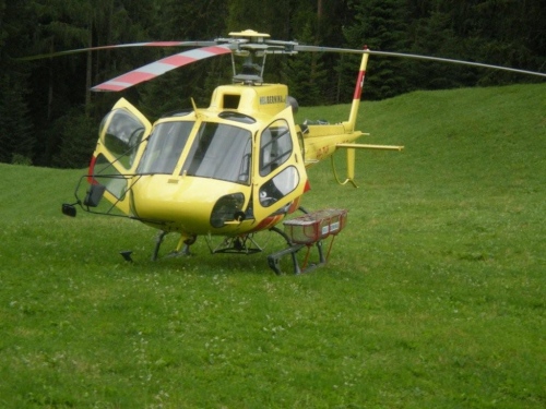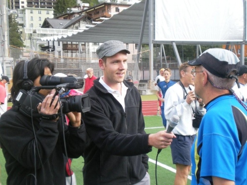 Dass es nicht nur für die Spitze stimmt, sondern auch für das breite Läuferfeld, davon überzeugt sich der letztjährige Mann im Mond an dieser Stelle höchstpersönlich: Auf der grünen Wiese steht ein Hubschrauber und am Wegrand der OK-Chef, der diese Streckenverbesserung gleich auch bildlich festhält.
