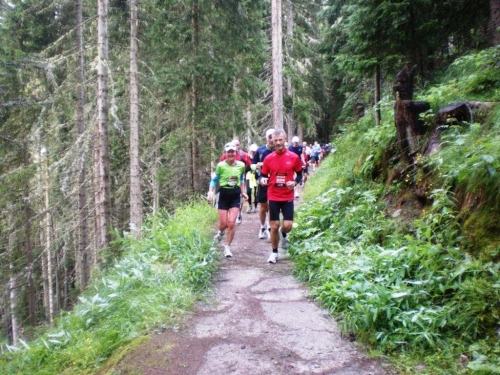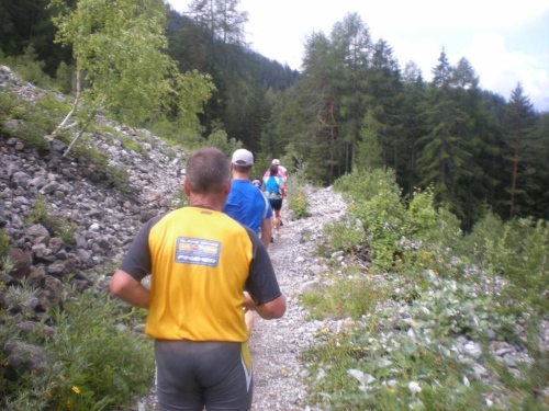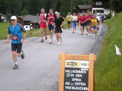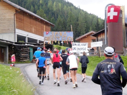Die ersten fünf Kilometer liegen schon hinter mir und ein Kontrollblick ans Handgelenk bestätigt mir, dass mich mein Gefühl nicht täuscht und ich so unterwegs bin, wie ich mir das vorgenommen habe. Gespannt bin ich auf die Verengung der Strecke, dort, wo es im vergangen Jahr zum Stau kam und der Tuffli auf den Mond gewünscht wurde. Heute, ein paar Tage nach den Feiern zum vierzigsten Jubiläum der ersten Mondlandung, sind solche Wünsche und Verwünschungen fast vergessen und es gibt auch keinen Grund, sie neu aufkommen zu lassen und auszusprechen. Es geht auf jeden Fall flüssig voran, was sicher daran liegt, dass der Wanderweg an dieser Stelle nicht nur mir breiter scheint als im vergangenen Jahr.