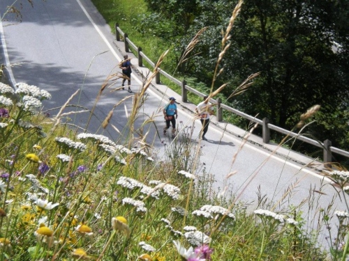 Anders als im letzten Jahr werden wir nach Bellaluna nicht auf einem Wurzelweg in den Wald geführt, sondern auf die Verbindungsstraße nach Bergün. Den Verlust dieses Idyllefaktors kann ich verschmerzen, denn die Steigung ist gleichmäßiger und da die ganze Straßenbreite zur Verfügung steht, kann das Tempo nach eigenem Gusto und Vermögen gewählt werden.