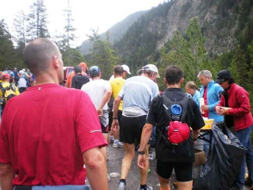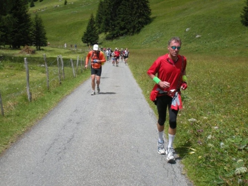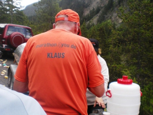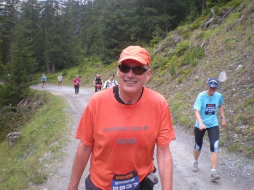 Einige Bekannte, darunter auch aus unserem Lauftreff, sind heute an den Start dieses happigen Bergmarathons gegangen, doch im Moment habe ich keine Kapazität, Ausschau nach diesen Mutigen zu halten. Der wieder einsetzende Regen wäscht mir noch mehr des Sonnenschutzes in die Augen, den ich am Morgen in Erwartung eines strahlend sonnigen Tages reichlich auf mein lichtes Haupt geschmiert habe.