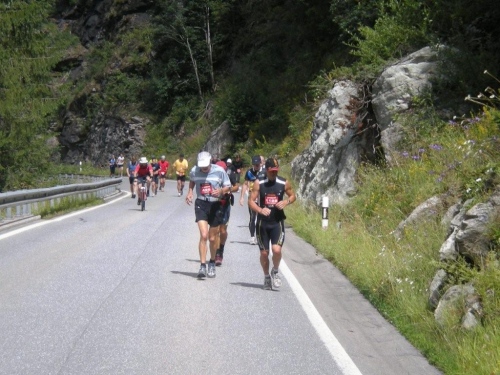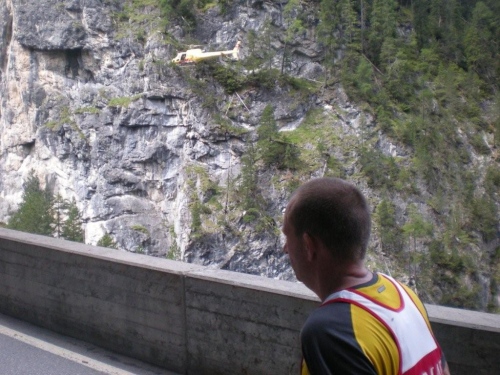 Während ich mich auf der Albulastraße langsam aber sicher zum nächsten Teilziel hinaufschraube, schraubt sich mehrmals der gelbe Hubflügler an uns vorbei. Also los, für die Kameraleute keine Schwäche vortäuschen und laufen statt gehen! Wobei, Aufnahmen von der Mitte des Feldes werden sicher höchstens als Füllmaterial gebraucht, wenn beim Schneiden sonst ein Bildsprung entsteht. Interessant sind für diese Medien nur die Gewinner an der Spitze und die so genannten Verlierer am Schluss des Feldes, welche beim Erreichen des höchsten Punktes mittgeteilt bekommen, dass sie wegen Überschreitung des Zeitlimits aus dem Rennen genommen werden. Deswegen gibt es uns, laufende Berichterstatter, die mittendrin statt nur dabei sind und nebst den eigenen Heldentaten auch diejenigen beleuchten, die um uns herum geleistet werden.