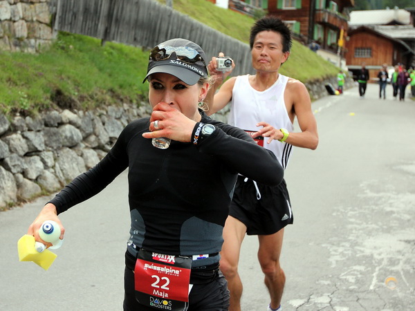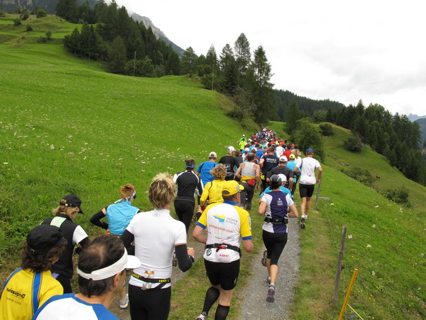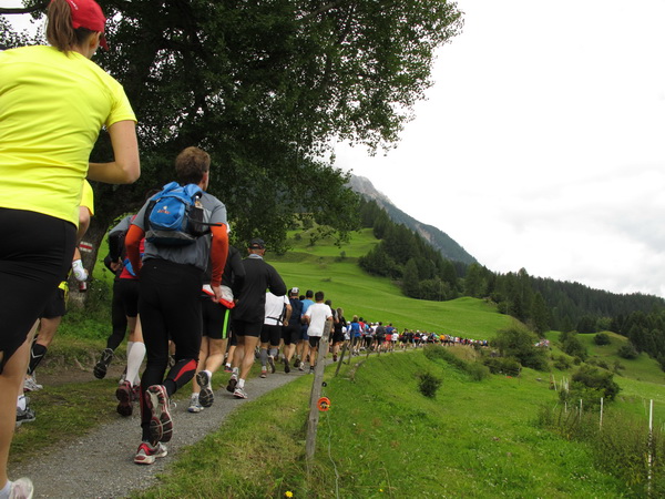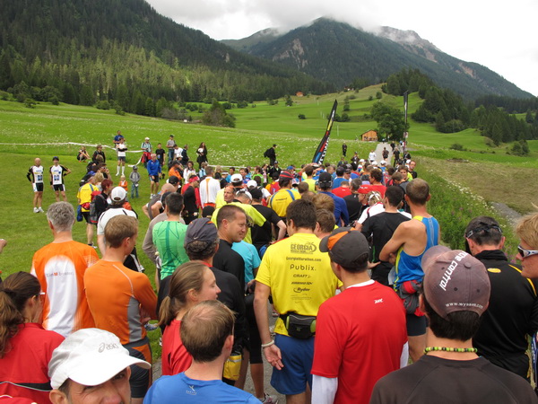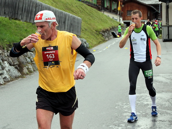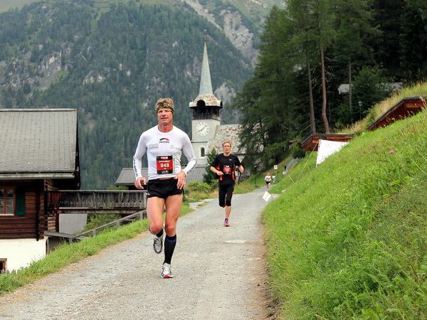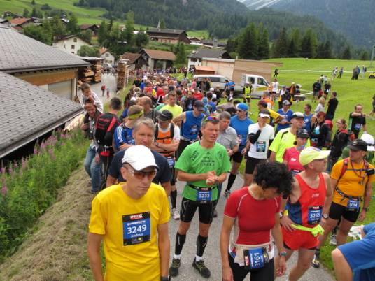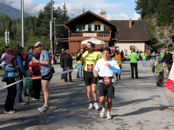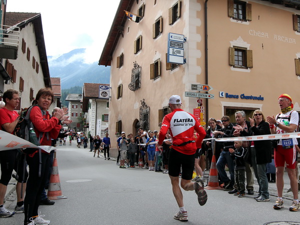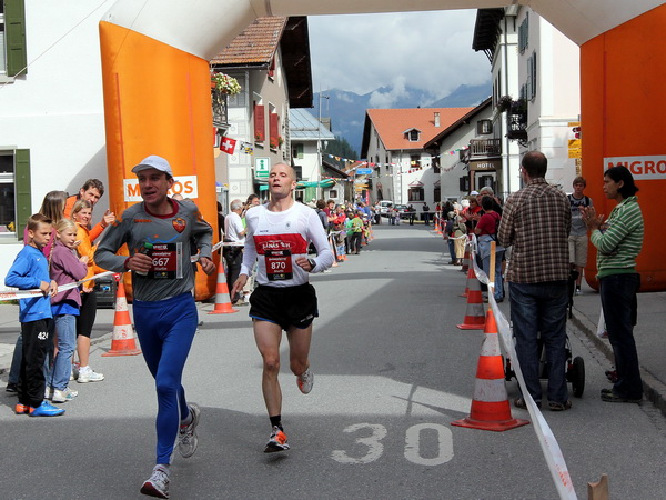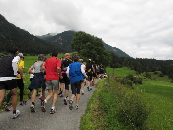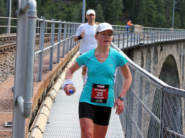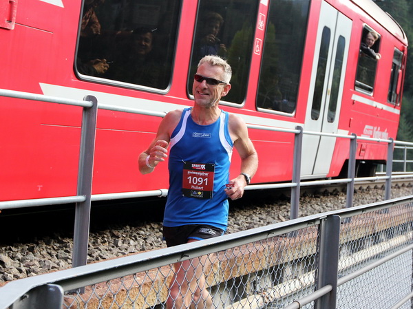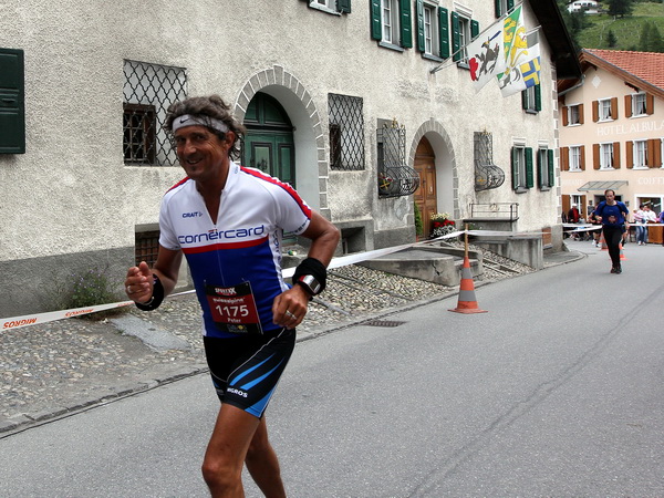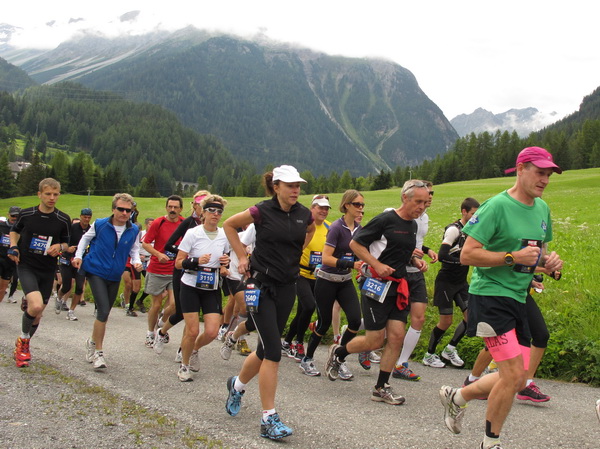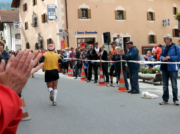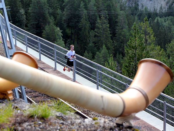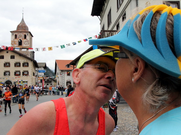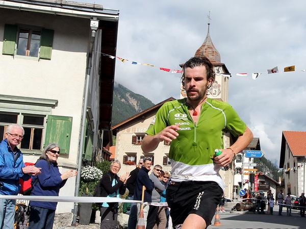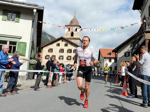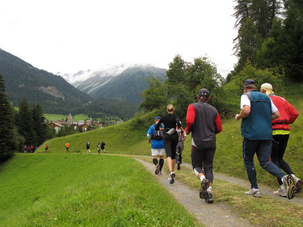 In Bergün (1365 m) ist derweil der Teufel los. Über 1100 Läuferinnen und Läufer machen sich fertig für ihren Lauf, die anderen haben bereits annähernd die Marathondistanz hinter sich und werden stürmisch beklatscht. Mittelpunkt und Wahrzeichen des Ferienortes ist der Platzturm La Tuor aus dem 13. Jahrhundert mit seiner für das Engadin typischen Malerei. Auch viele der alten Häuser im Ortskern sind bemalt und mit Erkern und kunstvollen Fenstergittern verziert.