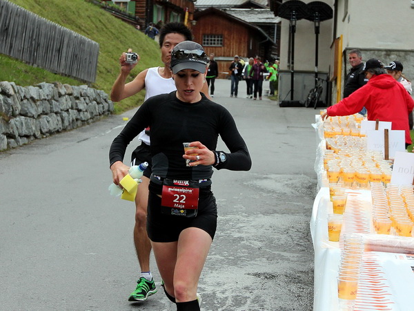Jonas Buud läuft zunächst in einer vierköpfigen Spitzengruppe. Wer in die Gesichter schaut, erkennt den Unterschied. Locker der Schwede, deutlich angestrengter die Konkurrenten. Auch Lizzy Hawker scheint an gute alte Zeiten anknüpfen zu können, denn sie macht einen lockeren und entspannten Eindruck.