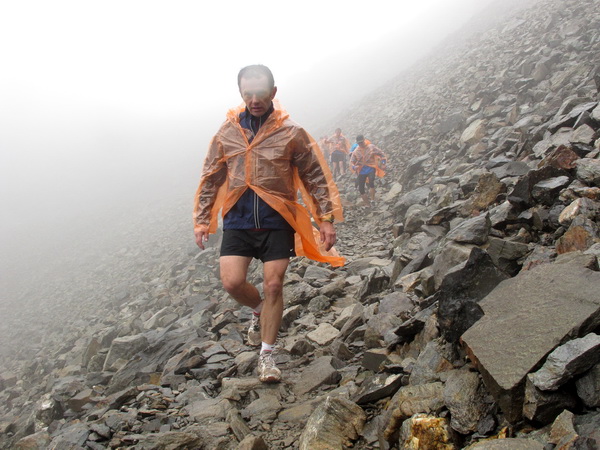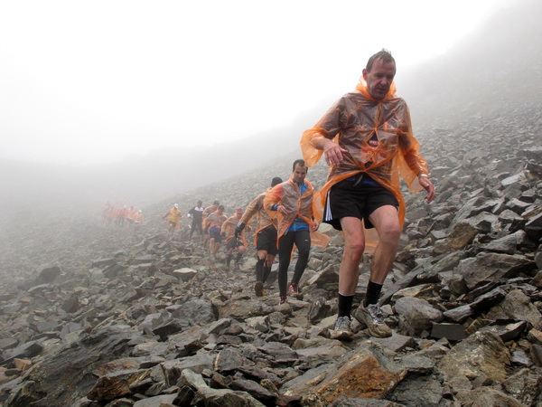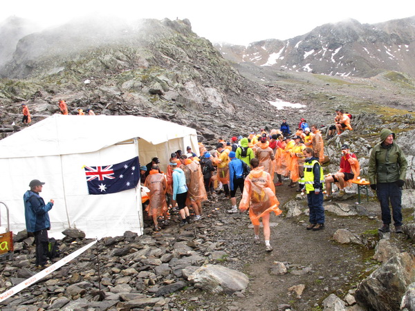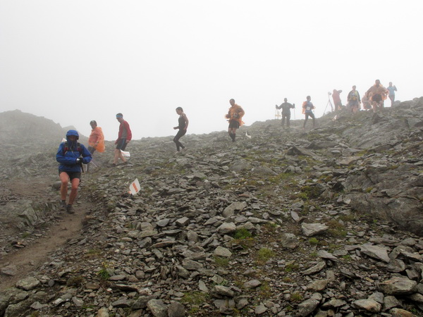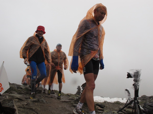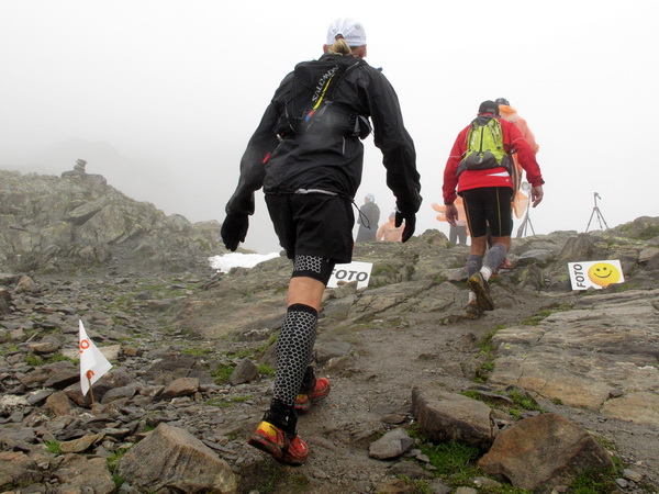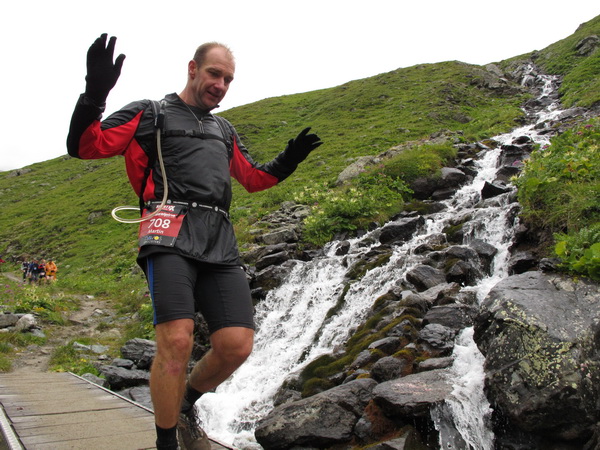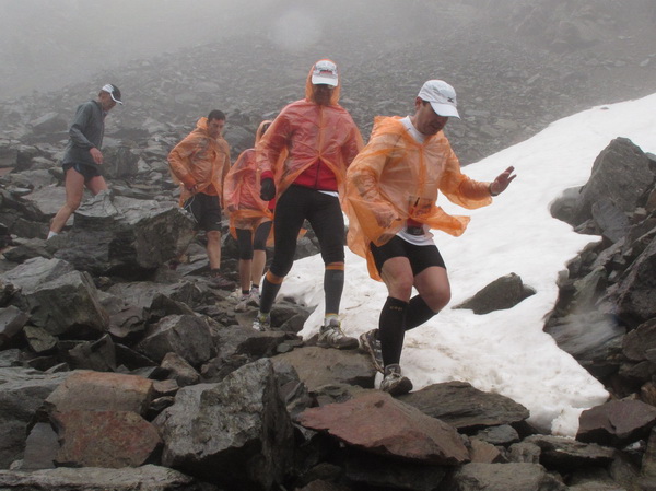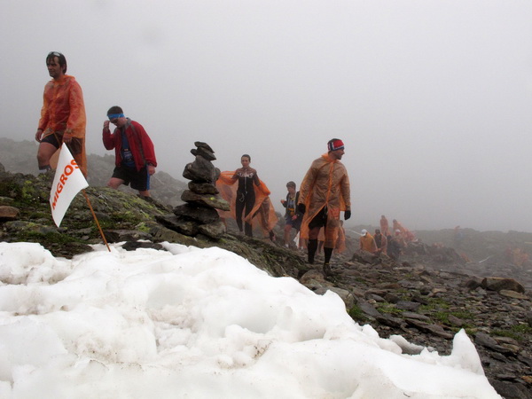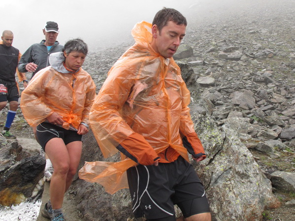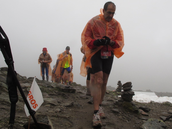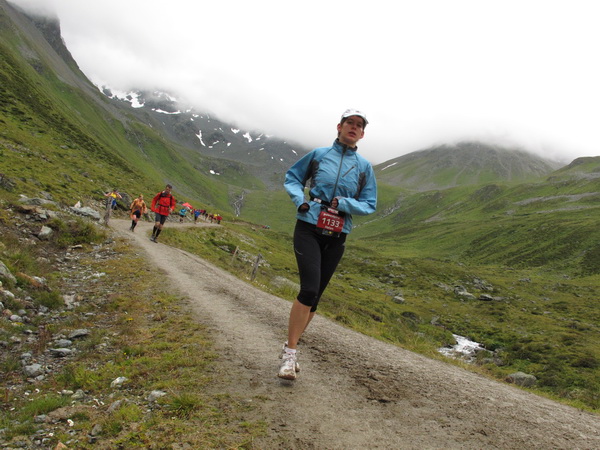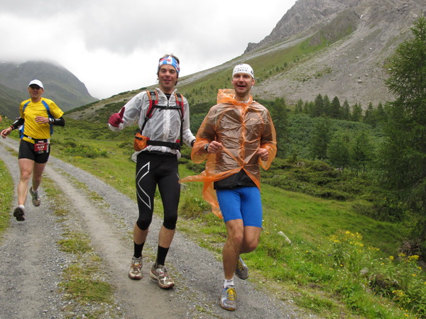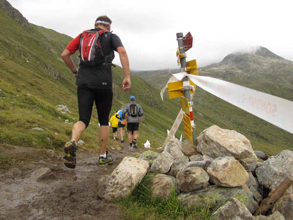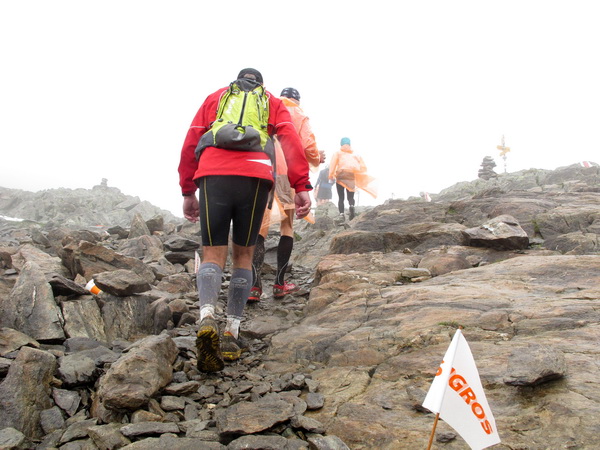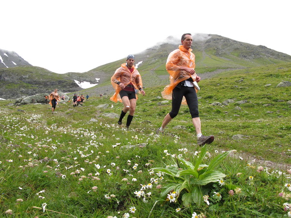 Sertig Dörfli (1861 m, 28 km), das sind nur ein paar Häuser und Ställe, aber für die Alpines so was wie die Rückkehr in die Zivilisation. Trotz des schlechten Wetters sind viele Zuschauer hier, um die geplagten Läufer willkommen zu heißen. Noch 14 Kilometer …