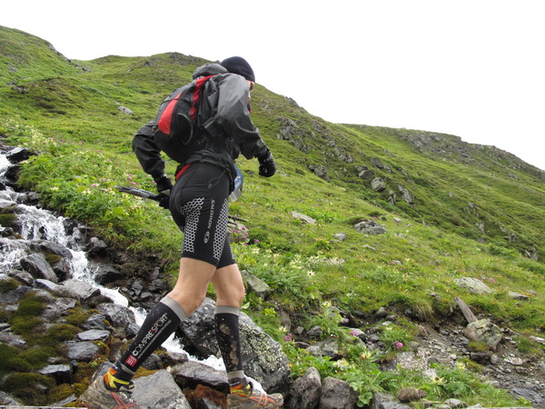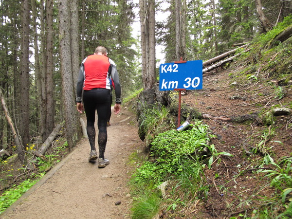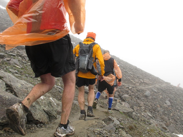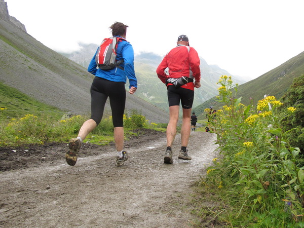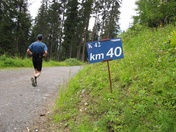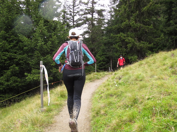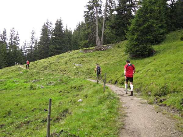 Auf die nächste menschliche Ansiedlung treffen wir erst wieder bei km 25 (Chüealpe, 2101 m). Danach wird der Weg besser und kommt einem trotz Matsch und sonst was wie eine Promenade vor. Es wird gelaufen, was die Knochen noch so hergeben.