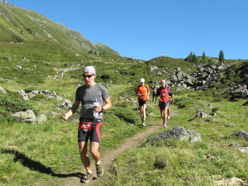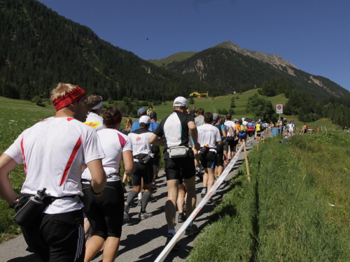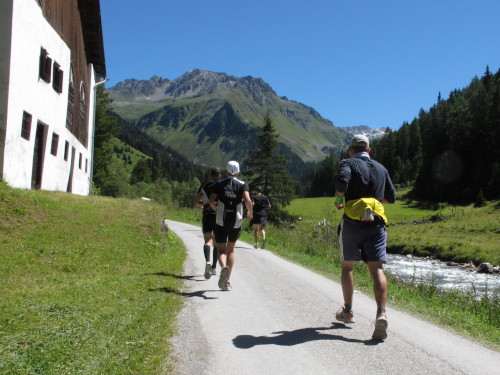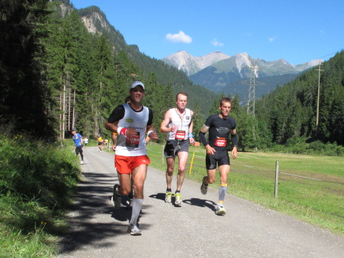 Der Weg nach Davos ist noch weit. 14 km bei fast 500 m Gefälle hören sich nicht dramatisch an. Aber es spielen sich Dramen ab auf diesem Teilstück, das der vom Papier her bequemste Streckenabschnitt zu sein scheint. Wer nämlich bergauf zu viel gelaufen ist und sein Pulver verschossen hat, muss jetzt bergab gehen und wird mehrfach bestraft. Im Gehschritt will der Weg nämlich kein Ende nehmen, ständig wird man überholt und die Schönheit des Tals entgeht einem vollends. Frust ist angesagt. Flüche und Schwüre sind zu hören. Wer dagegen gut drauf ist und Reserven hat, genießt den Lauf und macht etliche Plätze gut.