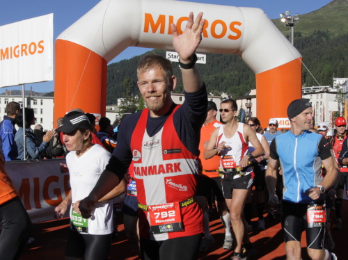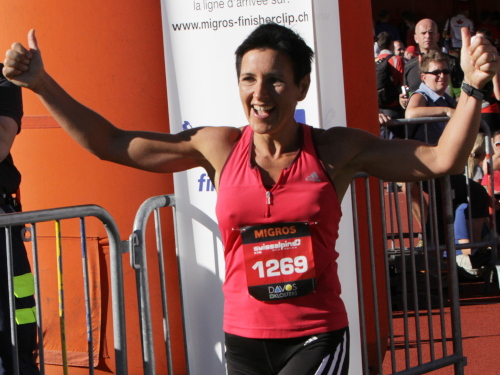 Es ist herrlich, hier zu sein. Die Leute klatschen, ich spüre keine Schmerzen. Ich sehe das Stadion, laufe auf den hässlichen Hintereingang zu und bin in der mit Fahnen geschmückten Arena. Man weiß in Davos, was man den Alpines schuldig ist. Viele begeisterte Zuschauer bleiben bis zum Schluss. Man kann es in den Gesichtern lesen: Es ist etwas Besonderes, hier ins Ziel zu laufen. Wer wie ich das etwas später tut, hat das Glück, dass Freunde warten. Schön, dass Ihr da seid.