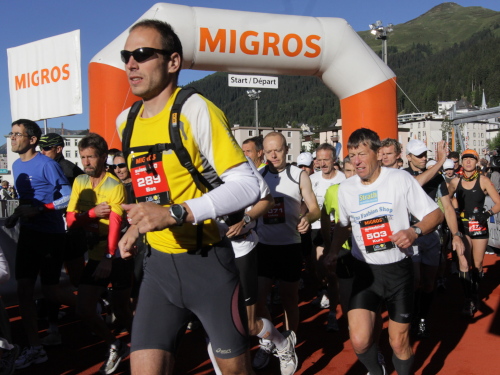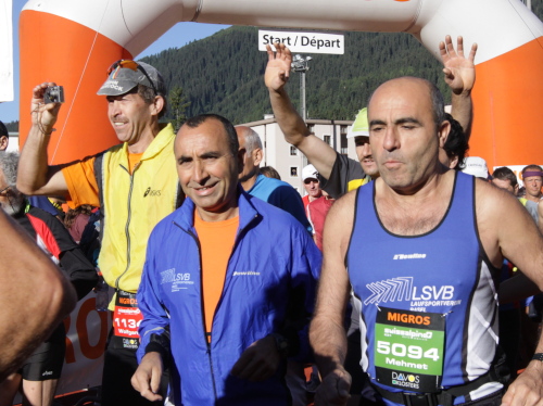 5 Minuten dauert die Fahrt, 5 Minuten der Fußmarsch zum Sportzentrum. Zeit genug, das Gepäck nach Bergün abzugeben und mit den vielen Bekannten einen Schwatz zu halten. 500 Läuferinnen und Läufer sind es bestimmt, die sich für den Frühstart entschieden haben. Nicht alle hätten das notwendig. Manche wollen einfach nur ohne Zeitdruck und Stress die Strecke genießen. Aber bestimmt sind auch ein paar Ehrgeizige dabei, die einmal „vorne mitmischen“ wollen. Jedenfalls sehe ich einige Startnummern, die hier nicht her gehören.