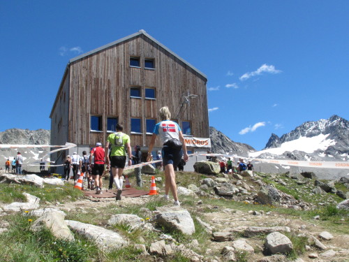 Wenn man die Keschhütte (2625 m - km 53) dann endlich sieht, ist man noch lange nicht oben. Der Weg scheint sich ewig hinzuziehen und obwohl er auf weiten Teilen gar nicht so steil wirkt, setzt er einem aufgrund der Höhe ganz ordentlich zu. Auf dem Schlussanstieg zum höchsten Punkt der Strecke lenken dann die phantastischen Blicke auf den Piz Kesch und den Porchabella-Gletscher von der Anstrengung ab. Viele Einheimische haben sich schon früh auf den Weg zur Keschhütte gemacht, um den Swissalpine hier oben live zu erleben. Sie feiern die Alpines, als seien sie bereits im Ziel. Das erreichen sie jedoch nur, wenn ihnen der Arzt hier für den nächsten Streckenabschnitt „grünes Licht“ gibt. Händedruck, Ansprache und ein tiefer Blick in die Augen genügen. Wer auf dem Zahnfleisch ankommt, bekommt eine Pause verordnet.
