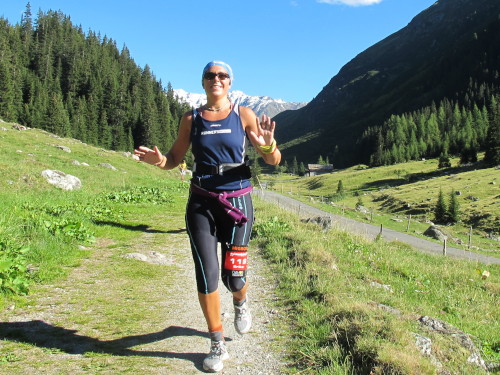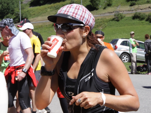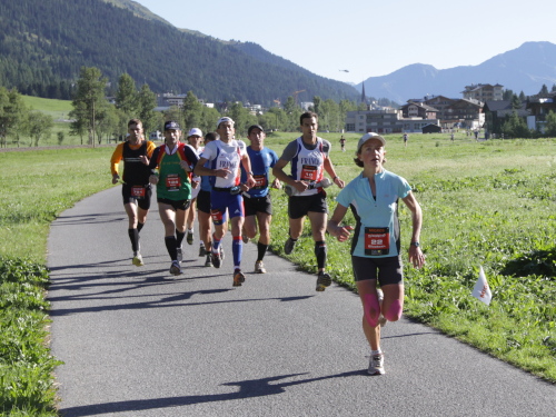 Die nächsten 7 Kilometer geht es dem Flüsschen Albula entlang, bis Bellaluna ziemlich bequem auf einem breiten Naturweg. Wir sind gerade bei der Verpflegungsstelle, als uns die ersten Frauen überholen. Jasmine Nunige ist dabei. Sie ist auf dem Weg zu ihrem dritten Sieg und ich zu meinem schönsten Swissalpine.