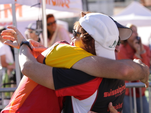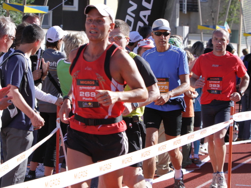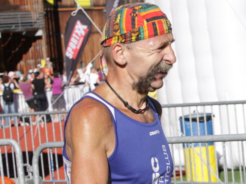 Mit „Conquest of paradise“ und guten Wünschen geht es auf die Strecke. Ich hätte nicht gedacht, dass so früh so viele Zuschauer da sind. Auch in der Stadt sind viele Fans an der Straße, Gäste stehen auf den Balkons der Hotels, es ist fast wie immer. Auch Andrea Tuffli sammelt seine ganz persönlichen Eindrücke. Der Zuruf eines Läufers freut ihn bestimmt ganz besonders: „Danke für die zwei Stunden!“