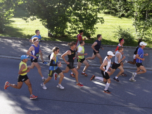 Obwohl mir das Frühstück die liebste Mahlzeit des Tages ist und das Buffet alle Köstlichkeiten für Läufer und Begleiter bereithält – ich kriege gerade mal ein Müsli und eine Banane runter. Die erste Bahn fährt pünktlich und ist gut belegt. Natürlich alles Alpines – meist Ersttäter, angelockt vom geänderten Zeitfenster. Die Stammläufer starten meist später. 5913 Anmeldungen registrieren die Veranstalter – und das nach dem Rekordjahr 2009. Alleine der K 78 (1661) verbucht einen Zuwachs von 42 %! Auch der K 42 (1166) und C 42 (361) liegen über dem Vorjahr.