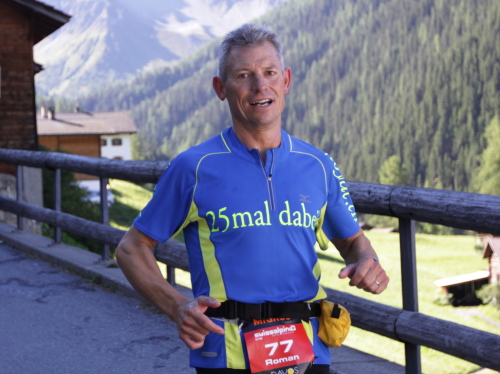 Tausend Dinge gehen mir durch Kopf – und der Tuffli. Ich habe ihm schon gestern zum Jubiläum gratuliert. Heute muss ich es noch einmal tun. Die Leistung dieses Mannes ist einmalig. Nicht nur, dass er die Idee zu diesem Lauf hatte. Er hat sie auch umgesetzt. Und nicht nur das, er hat den Swissalpine weiter entwickelt, ihn in 25 Jahren zur Marke gemacht, zum wichtigsten Sommerevent einer ganzen Region. Andrea, ich ziehe den Hut. Habe ich einen Wunsch frei? Mach weiter.