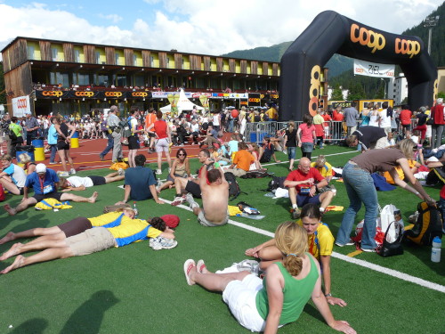 Endlich Davos, endlich das Ziel. Den letzten Kilometer versüßen viele Zuschauer mit respektvollem Applaus, Im Sportzentrum wird jeder Läufer und jede Läuferin angekündigt und beglückwünscht. Auch der Letzte wird gebührend gefeiert. Es ist wieder der schon erwähnte Pius App. Er hat sich für seinen Zieleinlauf sogar ein Lied wünschen dürfen: „Satisfaction“, die Rolling Stones. Der Mann ist mir sympathisch.