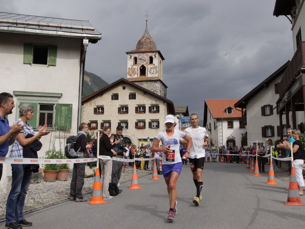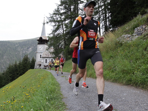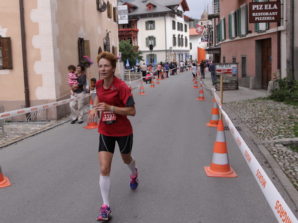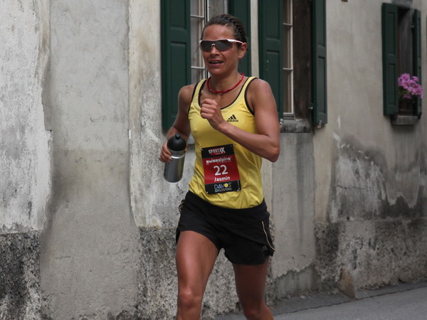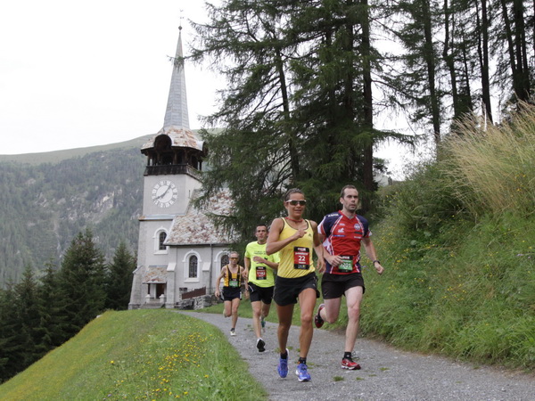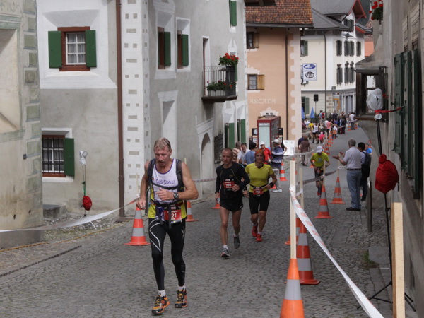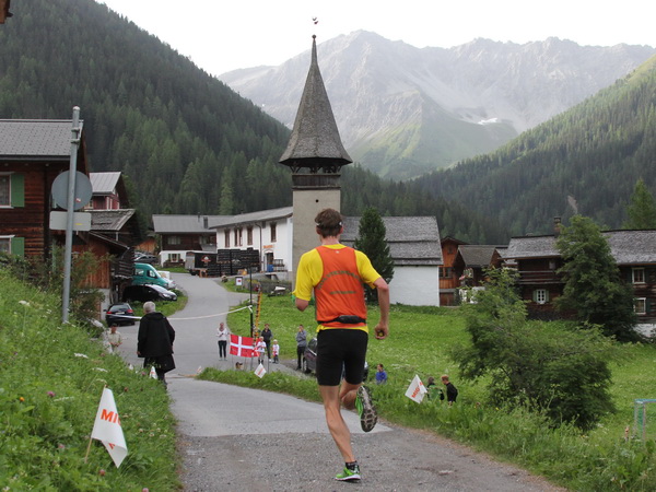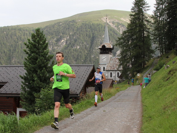 Noch 13 km …. In meinem geliebten Dischmatal ist das Genusslauf pur über sonnige Wiesenhügel, immer leicht abwärts und immer die Berge ausgangs des Tales im Blick. Das Sertigtal hat davon nichts. Es ist wild und ungemütlich. Manchmal geht es durch dunkle Wälder, über Stege und Brücken und immer rauf und runter. Wer noch einigermaßen bei Kräften ist, hier bekommt er den Rest. Selten hört man Läufer so wüst fluchen wie hier.