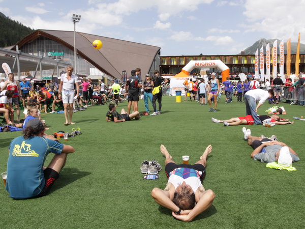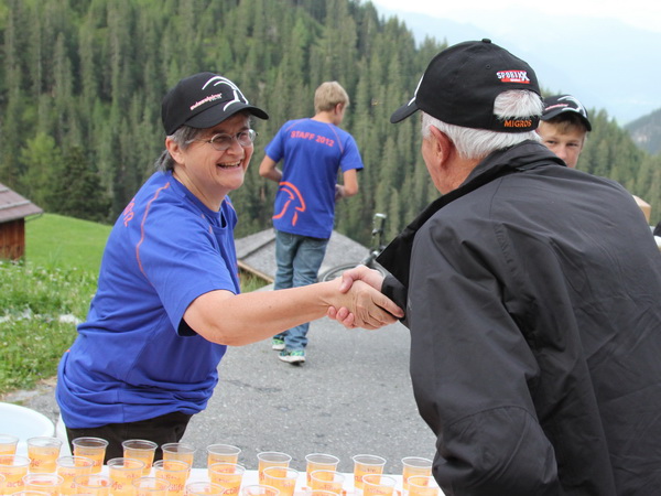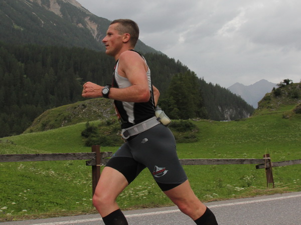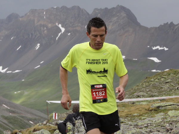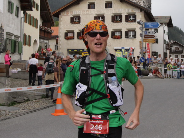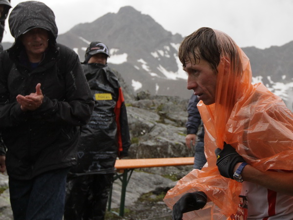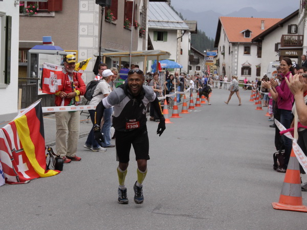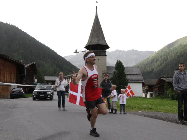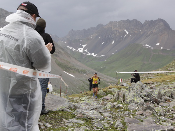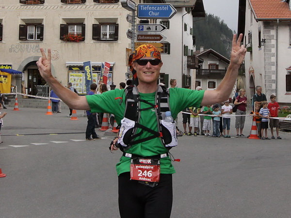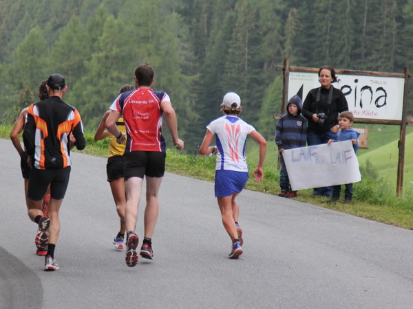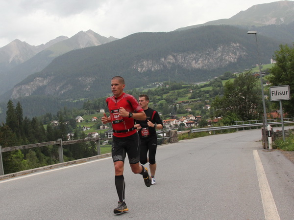 Auf die nächste menschliche Ansiedlung treffen wir erst wieder bei km 26 (Chüealpe, 2101 m). Danach wird der Weg besser und kommt einem trotz Matsch sehr komfortabel vor. Richtige Zivilisation erreichen wir bei Sertig Dörfli (1861 m, 29 km). Ab hier verkehren Busse, bringen Zuschauer hin und erschöpfte Alpines zurück.