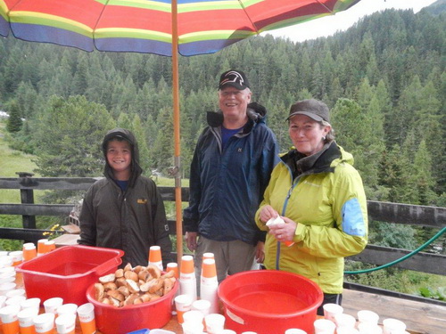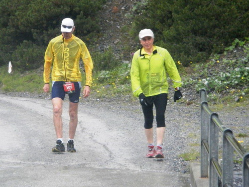 Die Wetterbesserung ist von kurzer Dauer und beim Schlussanstieg würde mir der Wind ohne Gegenwehr die Mütze vom Kopf blasen. Vor der Hütte frage ich den Medizinmann, ob es gefährlich sei, mit Visionen von Pommes weiterzulaufen, und bekomme Entwarnung. Beim Verpflegungsstand zieht es wie Hechtsuppe. Armlinge, Stulpen, Jacke, ich habe alles dabei, bin einzig zu faul, etwas davon hervorzukramen und anzuziehen. Das Angebot von Plastikmänteln kommt meiner Bequemlichkeit zugute und sogar beim Anziehen bekomme ich liebenswerte Hilfe. Natural Running? Muss man das immer so eng sehen?