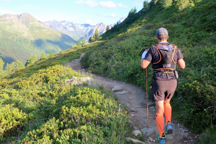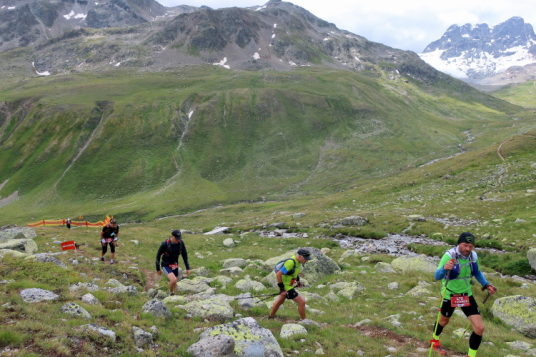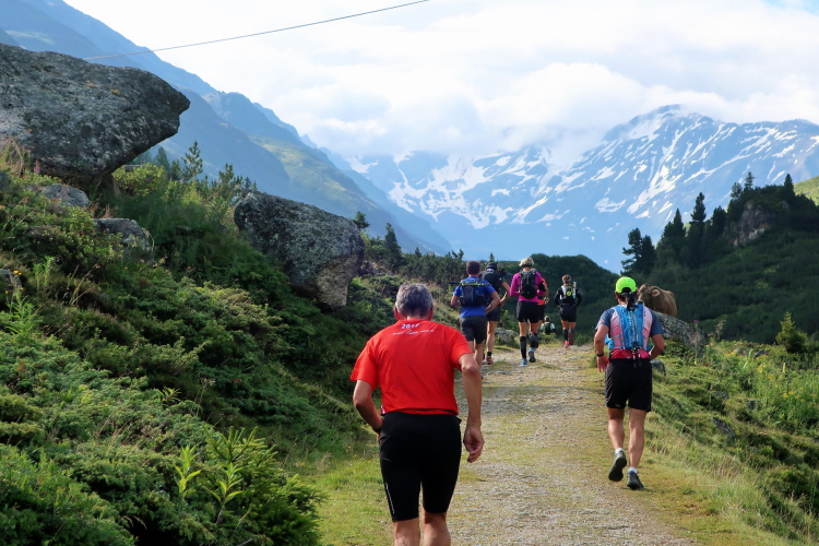 Zurück zum K68: Schaut man sich das Kursprofil des K68 an, so findet man einiges von dem wieder, was den K78 so geprägt hat, allem voran gleich im Doppelpack den Scaletta- und den Sertigpass sowie den Panoramatrail obendrauf. Dazu das Dischmatal als Einstieg und das Sertigtal zwischendurch und wieder zum Schluss. Zwar ist der K68 10 Kilometer kürzer, insgesamt aber deutlich alpiner geprägt: Im Durchschnitt läuft man über der 2.000-Meter-Höhenmarke und damit 300 Meter höher als beim K78, über die Hälfte davon auf Singletrails, während es beim K78 gerade ein Fünftel war. Mit 2.600 positiven Höhenmetern liegen K68 und K78 nahezu gleichauf. Beiden gemeinsam ist auch, dass in Summe mehr „richtig“ gelaufen werden kann als bei anderen Ultrabergläufen, wobei der Asphaltanteil - beim K78 immerhin noch 29 Prozent - auf gerade einmal 7 Prozent beim K68 geschrumpft ist.