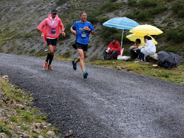 Auf dem Weg zur Keschhütte der Event-Fotograf. Er fotografiert die Läuferinnen und Läufer aus einem kleinen Zelt heraus. Anton knipst den „Kollegen“. Wie muss auch dieser Mann den Sport lieben und seinen Beruf, um das auf sich zu nehmen? Oben auf dem Pass wird wie immer Felix Brunner, der Chef von Alpha-Foto, selber bis zum letzten Läufer seine Arbeit tun.