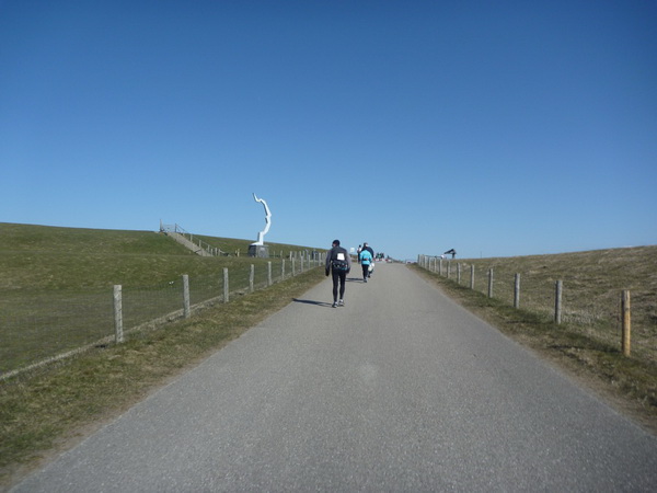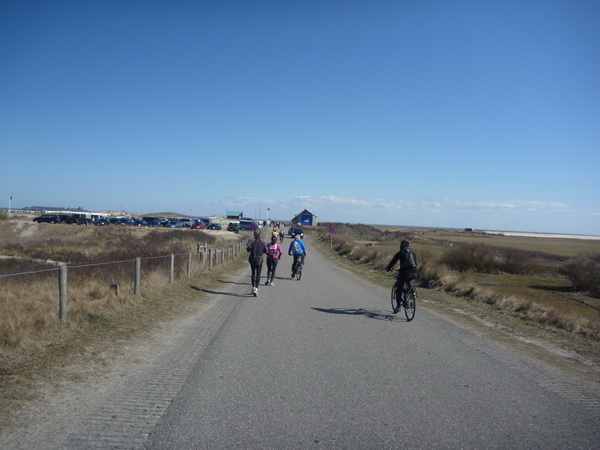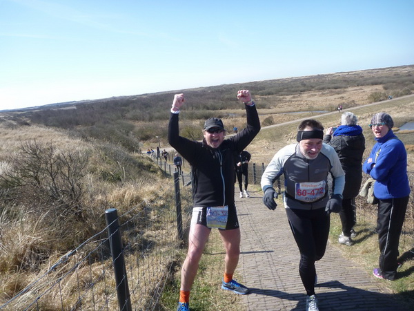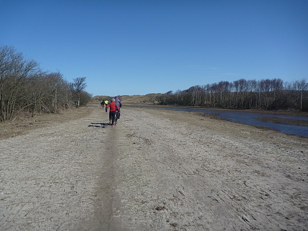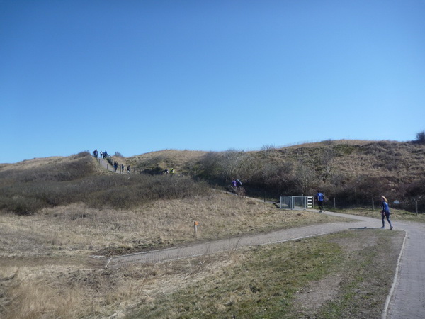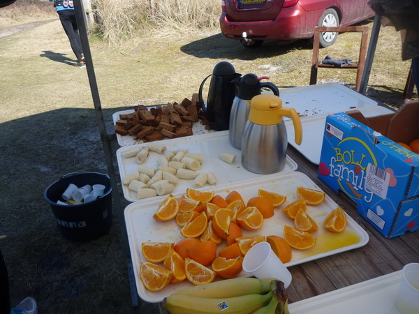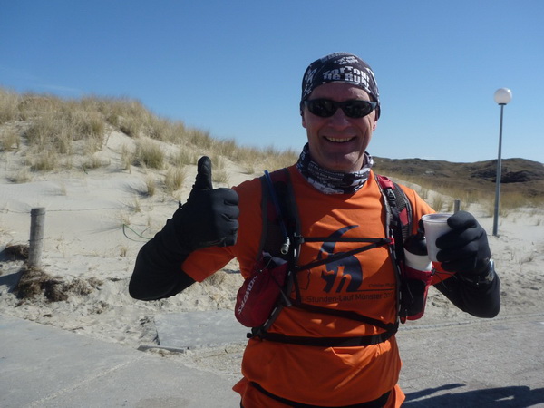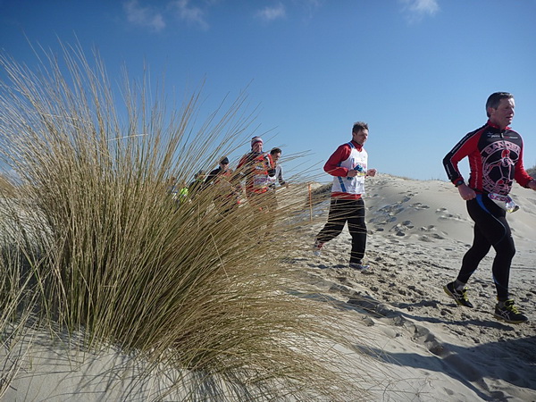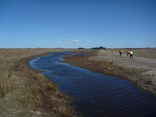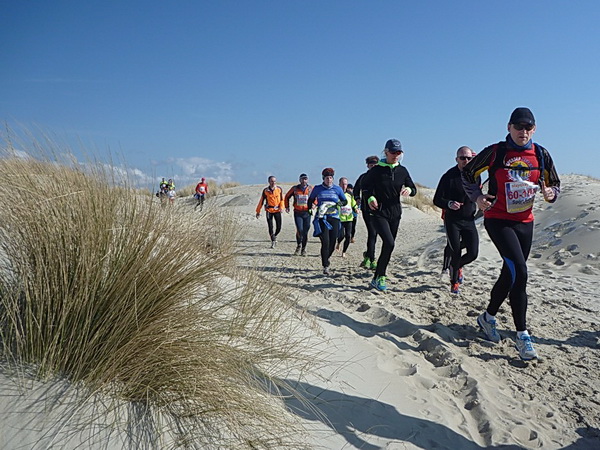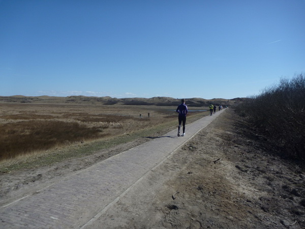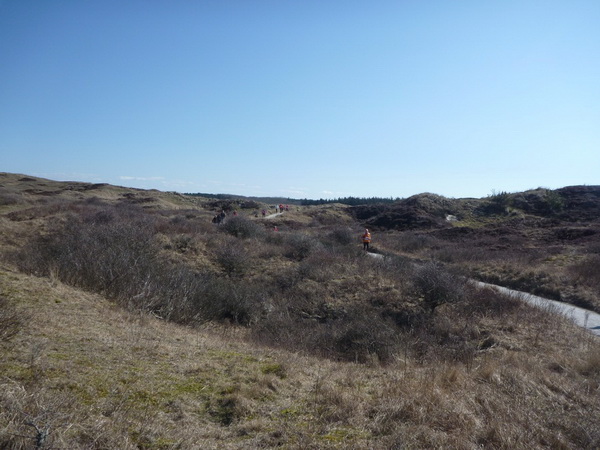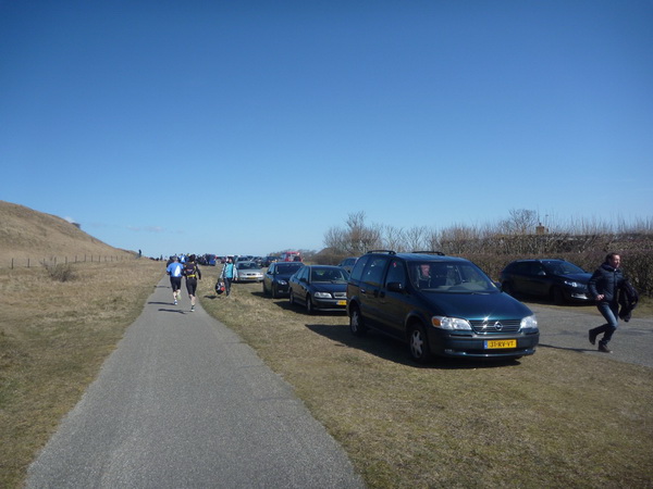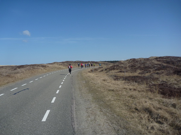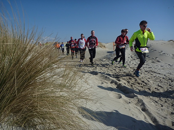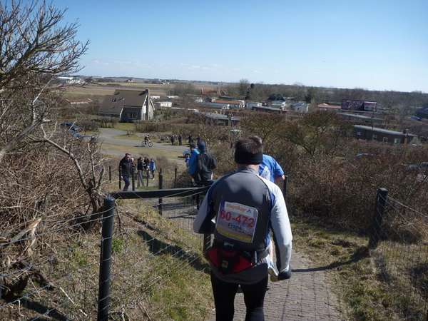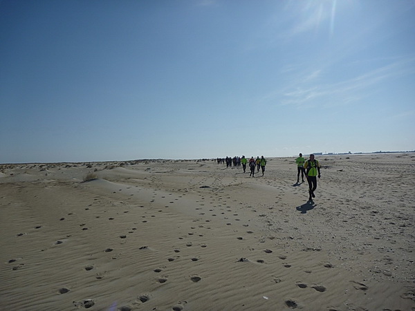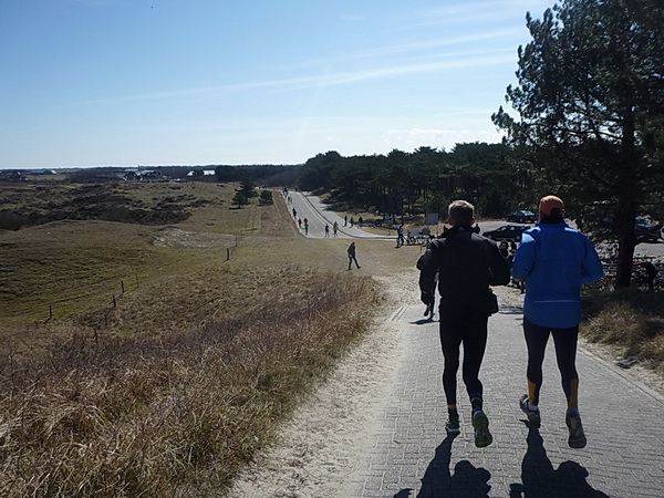 Rauf auf die Dünen, Verpflegungsstation. Ein wenig verständnislos bin ich über die hier wartenden Fahrradbegleiter. Wozu brauchen Staffelläufer Fahrradbegleitung? Es sind die Nichtläufer der Laufvereine. Es geht nicht um Hilfestellung, sondern um das gemeinsame Erlebnis. Sie stören nicht, es ist ok und eine gute Idee, so Familienmitglieder und Freunde am Lauf teilhaben zu lassen.