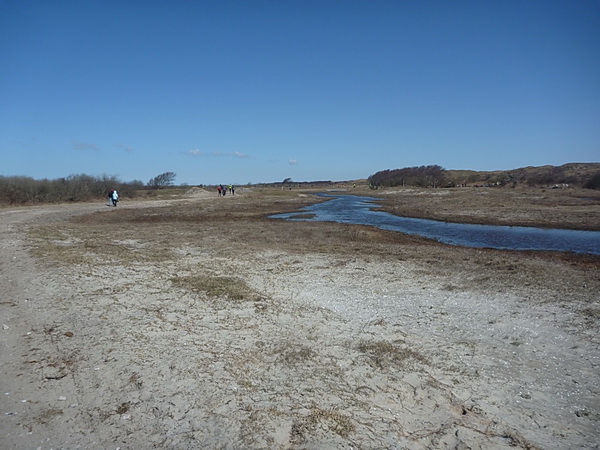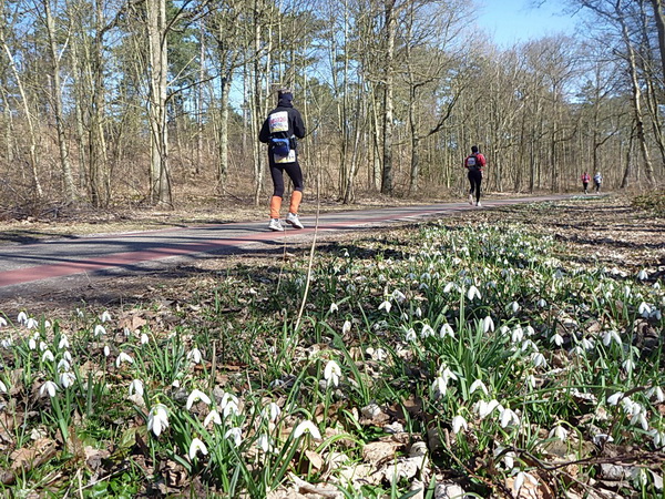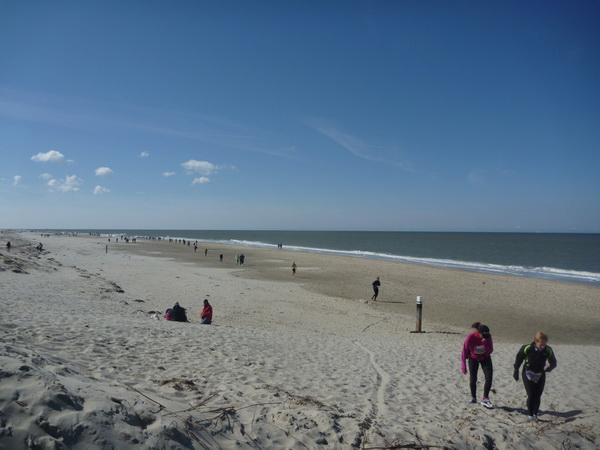 Wechselstation, riesige Felder aus Schneeglöckchen im lichten Kiefernwald. Wunderbar zu laufen, es geht zurück auf den Strand, wo zahllose Osterspaziergänger unsere unmarkierte Strecke säumen. Der Osterspaziergang ist eine christliche Tradition, fußt auf der Wanderung der Jünger Jesu nach Emmaus, die dort den Wiederauferstandenen trafen.