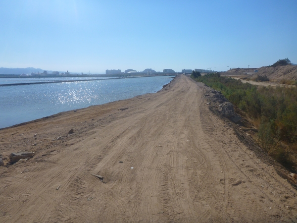 Alles ist nun bekannt vom Hinweg. Auch die beiden Musikgruppen nach der Unterführung, die Wasserflächen um den Vogelbeobachtungspark, die Saline und der Damm parallel zur jordanischen Grenze.