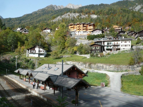 Nein, das war nicht Steiner, das schrieb Goethe im Jahre 1779 zu diesem Wasserfall. Ich nehme mir keine Zeit zum Niedersetzen, denn es wartet der nächste Anstieg bis Salvan. Auf einem Serpentinenweg winden wir uns zu diesem vierten Kontrollpunkt bei Km 27, an welchem wir auch wieder fürstlich verpflegt werden. Den Prophetengarten im Ort spare ich mir für einen Wanderausflug auf. Mit nunmehr leichter Steigung geht es weiter nach Marécottes und seinem Wildpark und dann nach Trétien, wo der Anstieg wieder knackiger wird.