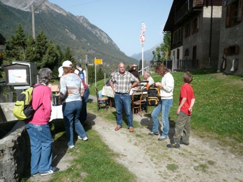 Bei der Kirche von Finhaut ist der fünfte Kontrollposten, welchem wieder ein extensives Buffet angegliedert ist. Käseplatte mit Brot und hauchdünn geschnittenem Walliser Trockenfleisch der Extraklasse, Kuchen, Kekse, und, und, und…. Dieter und ich kennen keine Eile und nehmen uns richtig Zeit, um Körper und Geist auf die zweite Hälfte des Défi vorzubereiten.