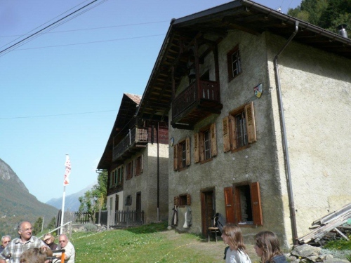Nach dem Aufstieg folgt der Weg einen Kilometer der Hauptstraße entlang, welche Martigny mit Chamonix verbindet. Eine Brücke ermöglicht den Wechsel zur rechten Talseite, womit wir uns auf dem Rückweg befinden. Auf dieser Talseite erinnert uns Vieles an den ersten Tag des Gondo Events, wenn man sich das durch langgezogene Nanztal dem Rhonetal hin zubewegt. Bevor das Gefälle zunimmt, gibt es bei einem schmucken Weiler nochmals Verpflegung. Die Helfer bereiten für sich Raclette zu und würden auch uns davon abtreten – und wie im Wallis üblich nicht ohne ein paar Tropfen heimischen Rebensafts. Das spare ich mir gerne fürs Ziel auf und fülle die Trinkblase mit quellfrischem Wasser, ein Luxus, den es nur aus einer solchen Brunnenröhre zu haben gibt.