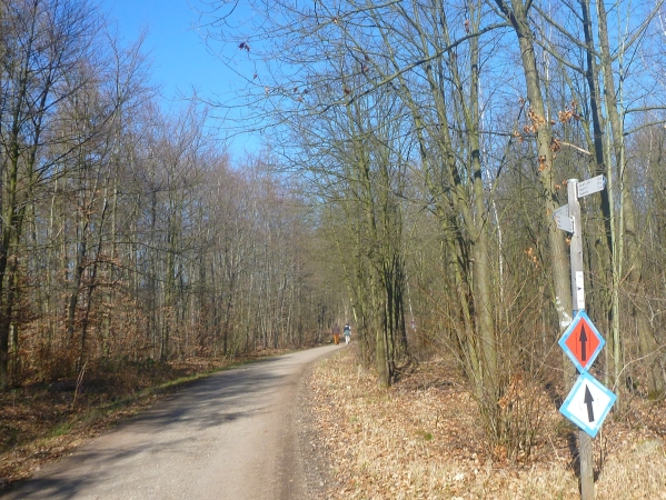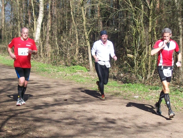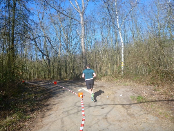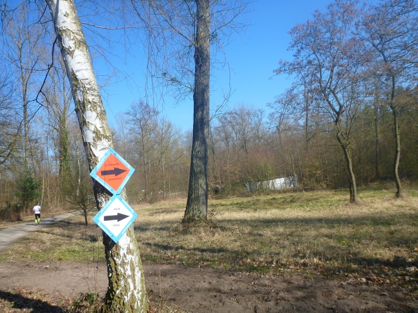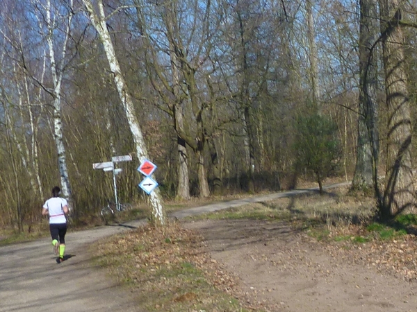 Ich kenn hier jeden Meter. Seit über 20 Jahren laufe ich hier jeden Dienstag und hab bereits einige Studentengenerationen durchs Gelände gescheucht. An einer Abbiegung sehe ich wieder Dirk, den ich bereits bei der Startnummernausgabe traf. Wir haben schon so manchen Lauf zusammen gemacht. Dirk ist wieder auf bewährte Weise in die Organisation des Laufes eingebunden und weist uns den rechten Weg.