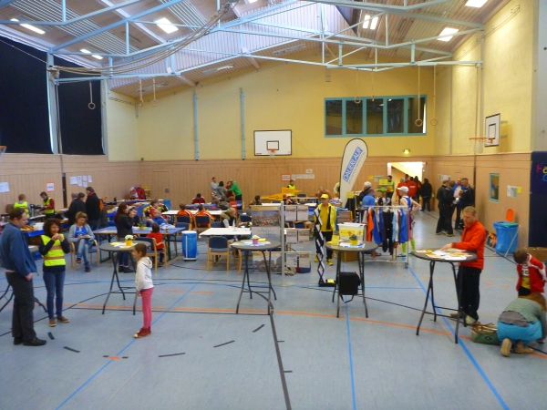 Rasch habe ich meine Startunterlagen. Meine Tasche mit Wechselkleidung lege ich in der Turnhalle der Waldorfschule ab. Hier werde ich später auch duschen können.