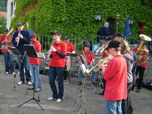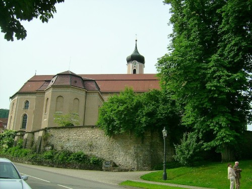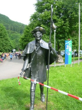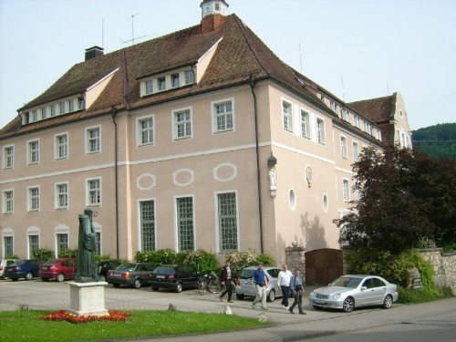 Nach einem weiteren Wegstück durch Wald und durch Wiesen liegt vor uns Beuron. Der Ort wurde bereits in der Mittelsteinzeit besiedelt. Heute ist er bekannt durch das Benediktinerkloster. Vom Kirchturm der Abteikirche läuten die Glocken. Die Patres haben sich schon alle im Gotteshaus versammelt. Wenn sie uns in ihr Gebet einschließen, dann kommen wir ja alle gesund ans Ziel. Unsere Strecke führt kurz durch Beuron, an einer Musikkapelle vorbei und dann wieder hinaus in die Natur.