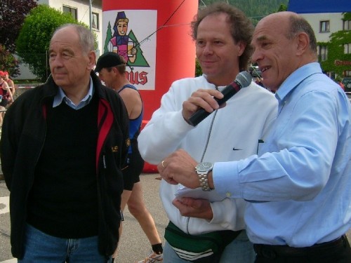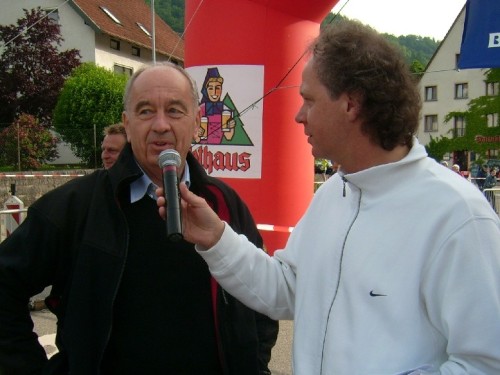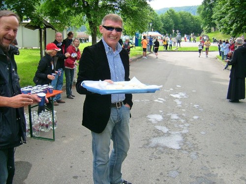 Ich komme mit einem Seniorenläufer zum Reden, es ist Dr. Peter Grinda aus Konstanz. Für ihn ist der Sport der ideale Ausgleich im Berufsleben. Er war, da auch er beim Laufen in sich hineinhört, noch nie verletzt. Er kann es nicht glauben, als ich ihm von meinem Doppeldecker erzähle. Heute will er einfach dem Motto der Veranstaltung folgen: Run & Fun. Auf gut bayerisch: Laffa und Spass ham.