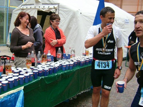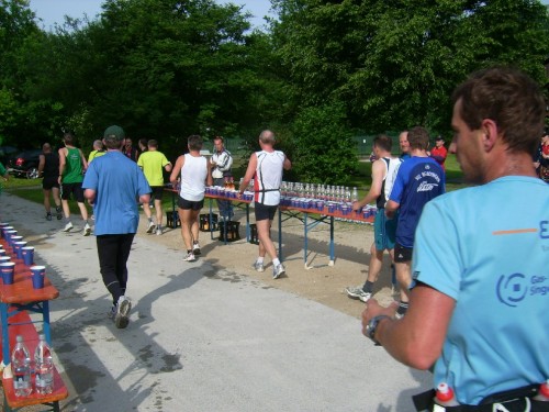 Zahlreiche Versorgungsstellen mit Wasser, Apfelschorle, später auch Cola, Bananen und Hefezopf.