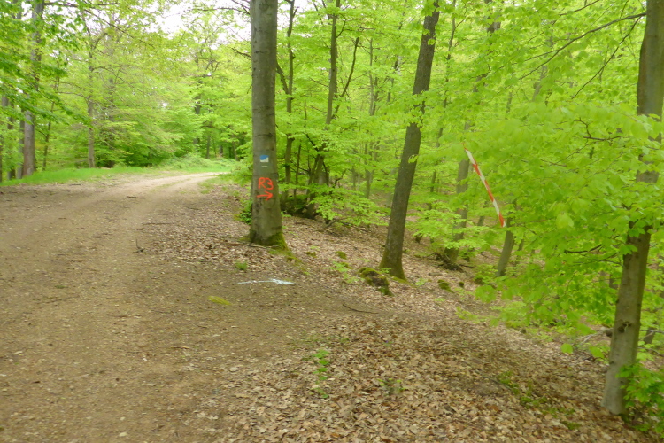 Bald folgt die Streckentrennung für den T10, der aber erst um 10 Uhr gestartet wurde. Diese Läufer sind noch nicht hier. Für uns geht es nun steil bergab. Als Ausgleich erreichen wir einen breiten Waldweg. Mich irritiert, dass ich Kerstin, die mich vorhin überholt hat, trotz Downhill nicht mehr sehen kann. Ist es möglich, dass meine Fitness nicht reicht, um diesen Traillauf zu meistern? Ich will darüber nicht nachdenken. Die Strecke ist einfach zu schön und die Trails genau nach meinem Geschmack. Es blüht und grünt, dazu das perfekte Wetter - so muss es sein.