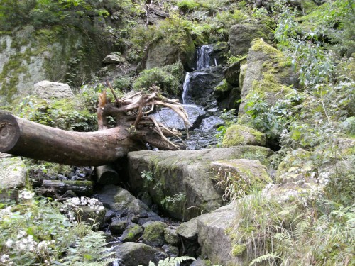 Unterwegs bietet auch noch die Talsperre Sosa Abwechslung, so dass es sich gut laufen lässt. Bei Kilometer 30 erreichen wir den höchsten Wasserfall Sachsens, der direkt neben der Strecke liegt. Hier war ich vor zwei Jahren schon so kaputt, dass ich den Wasserfall einfach übersehen habe. Nach Kilometer 30 geht es ans Eingemachte. Erst steigt die Strecke stark an, um danach sehr oberschenkelunfreundlich steil abzufallen. Das tut dann schon ein bisschen weh, das könnt ihr mir glauben. Trotzdem blicke ich bei Kilometer 34 am tiefsten Punkt der Strecke noch ganz passabel in die Kamera.