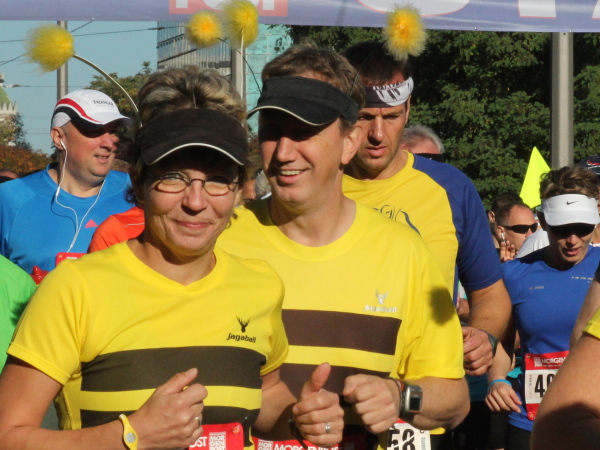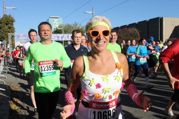 Das Unterhaltungsprogramm am Start ist kurzweilig, es macht Freude zuzuhören. Artur Schmidt (wer kennt ihn nicht?) holt sich Normalos und Sportlerlegenden ans Mikrofon. Einer davon ist Hagen Melzer. Der Europameister von 1986 über 3000 Meter Hindernis gibt einen klugen Spruch von sich: Einmal Läufer, immer Läufer. Das dürfte auf viele am Start zutreffen.