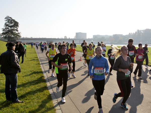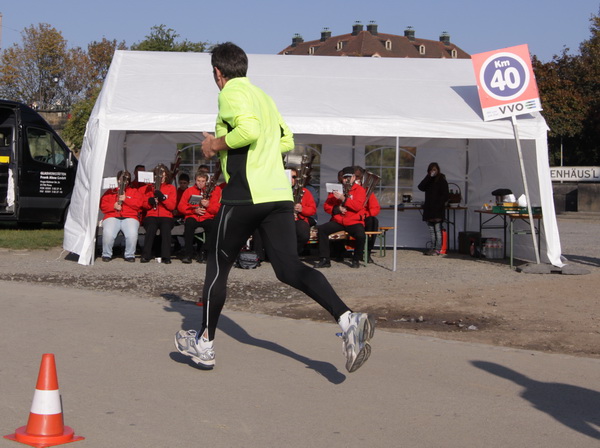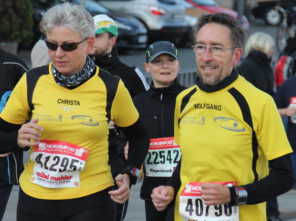 Dann sind es nur noch Minuten bis zehn Uhr, dem Start. Musikalisch heißt es „The Final Countdown“, dann werden die letzten zehn Sekunden herunter gezählt, bevor uns ein Startschuss auf die Strecke haut. Meine Nervosität ist jetzt dem Augenblick der Wahrheit gewichen. Ein guter Tag für eine starke Vorstellung, glaube ich. Wer eine schnelle Zeit laufen will, dem kann das bei bis zu 10 Grad und Sonnenschein gut gelingen. Bei diesen freundlichen Bedingungen werden auch Zuschauer an der Strecke stehen. Für mich ist der Kurs optimal: zwei fast gleiche Runden. So lernt man den Kurs auf der ersten, defensiv gelaufenen Runde gut kennen und kann dann in der fast gleichen zweiten Runde noch aufdrehen.