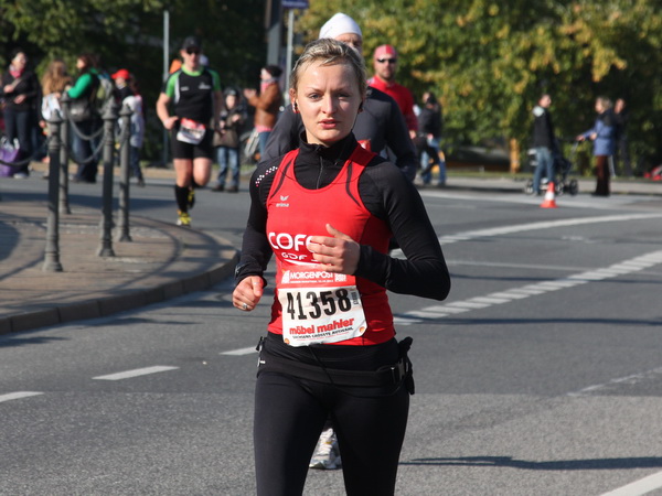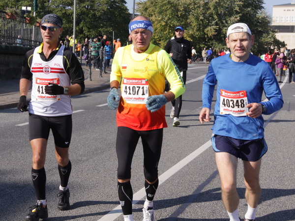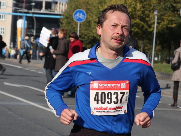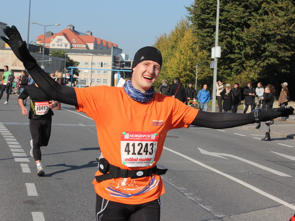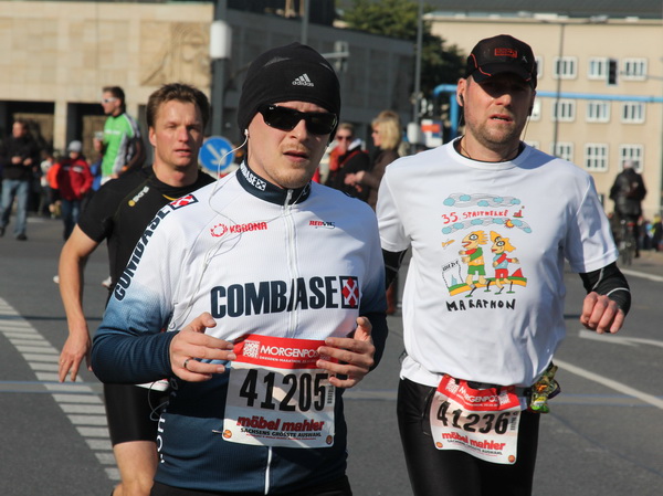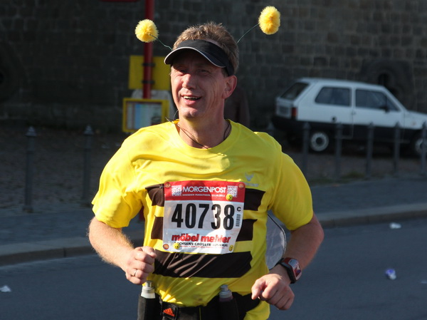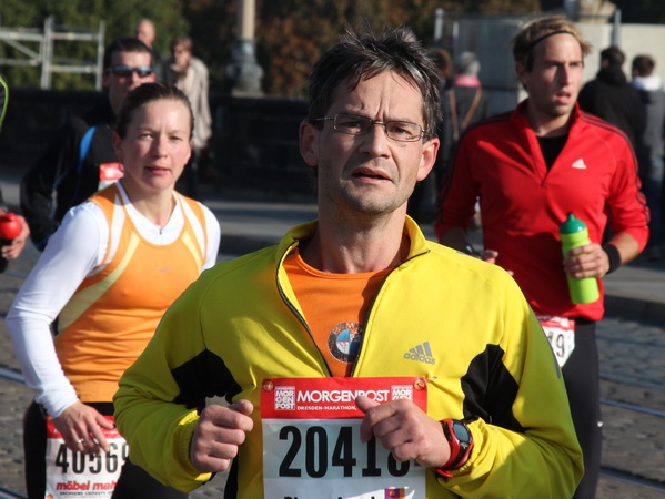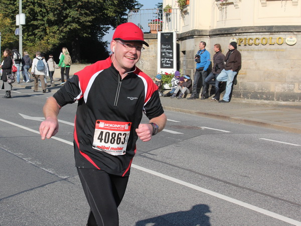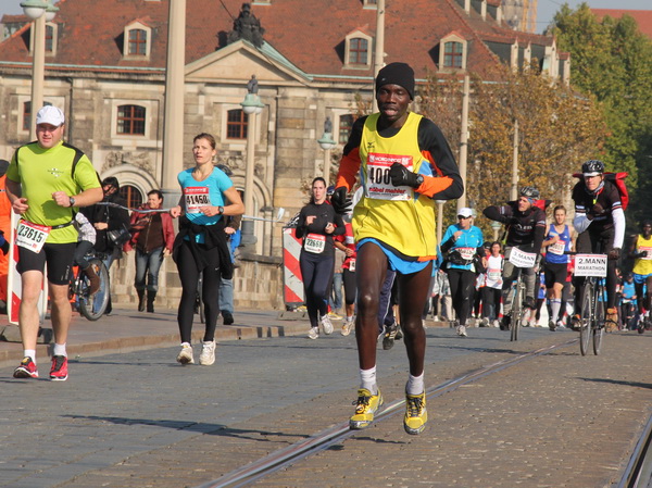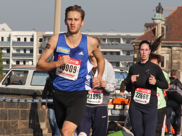 Mittlerweile sind die Abstände zwischen den einzelnen Läufern groß geworden. Wer von hinten kommt, überholt und geht voran. Und Anhängen ist beim Überholten nur in seltenen Fällen möglich. Einer hängt bei mir zwei, drei Kilometer im Schlepptau dran. Oder nutzt er den Windschatten, den ich ihm auf der Tiergartenstraße südlich der Großen Gartens gebe?