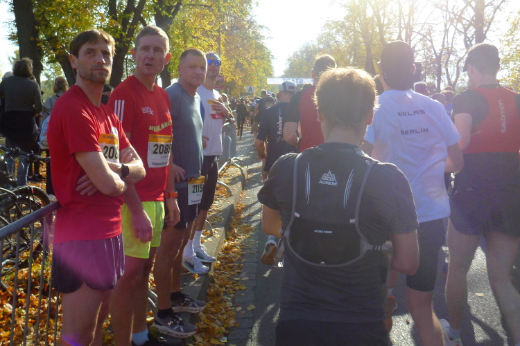 Ich gebe meinen Rucksack in der Tiefgarage ab und treffe mich für einen Augenblick mit Artur Schmidt, dem bekannten Moderator im Zielbereich. Er berichtet mir, dass gerade beim Zieleinlauf des Zehntelmarathons (Start 09.30 Uhr) mehr Frauen als Männer unterwegs sind. Er stellt dann dem Publikum unser Portal vor und dann mache ich mich auf in Richtung Start, wo vor wenigen Minuten die Teilnehmer des Viertelmarathons auf ihr Rennen gegangen sind.
