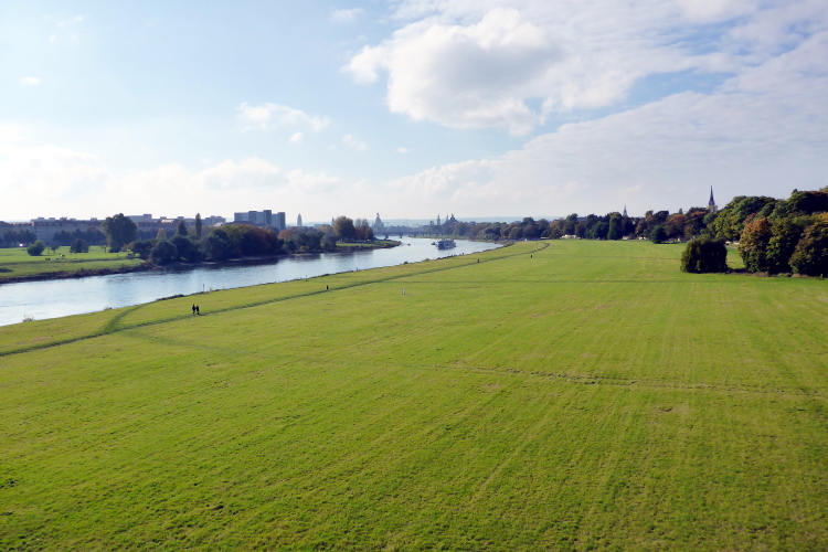 Weiter geht es über die Äußere Neustadt bis zur Stauffenberg Allee.  Die Äußere Neustadt ist auch als Antonstadt bekannt, benannt nach dem sächsischen König Anton und gilt heute als Szeneviertel Dresdens. Kaum eine Fassade wurde hier von Graffitis verschont, hat dennoch (oder deshalb) ein ganz eigenes Flair. Durch den Waldschlößchentunnel und über die Waldschlößchenbrücke geht es nun in die Stadtteile Johannstadt und Gruna. Die Waldschlößchenbrücke war lange  Thema in den Medien. Die Rechtmäßigkeit des Baus wurde durch Gegner angezweifelt und es stand sogar der Abriss des 181 Millionen Euro teuren Baus zur Diskussion. Die Brücke kostete dem Elbtal auch den Unesco-Wultkulturerbe-Titel. Mit diesem Thema beschäftigt sich das Bundesverwaltungsgericht noch heute und das Fortbestehen der Waldschlößchenbrücke ist daher noch immer ungewiss. Heute dürfen wir sie jedenfalls überqueren und wir haben eine wunderbare Aussicht auf das Elbtal.