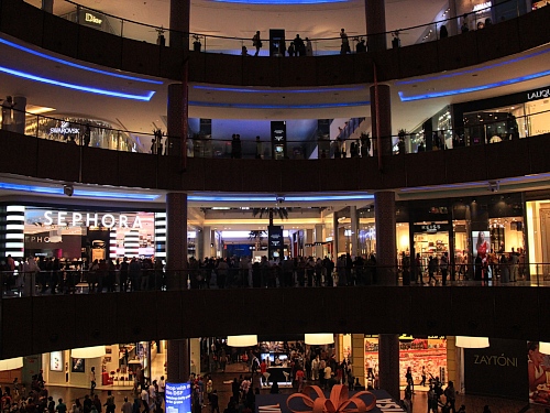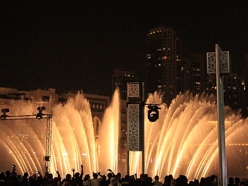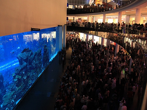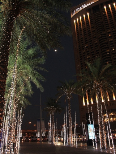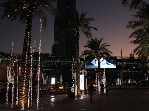 Nach einer Atempause im Kaffee der Hotel-Lobby zieht es uns zurück zum Burj Khalifa. Auf der Terrasse der Dubai Mall finden wir ein italienisches Restaurant. Im Freien stärken wir uns zu Füssen des Glitzerturms mit Pastagerichten. Die Wasser-Feuer-Licht-Laser Show im Lake Dubai verzaubert uns. Mit Blasen an den Füssen wandern wir spät abends zum Frühstück-Einkauf in den gut ausgerüsteten Supermarkt der Mall. Dann fallen wir gespannt auf Tag X in die Betten.