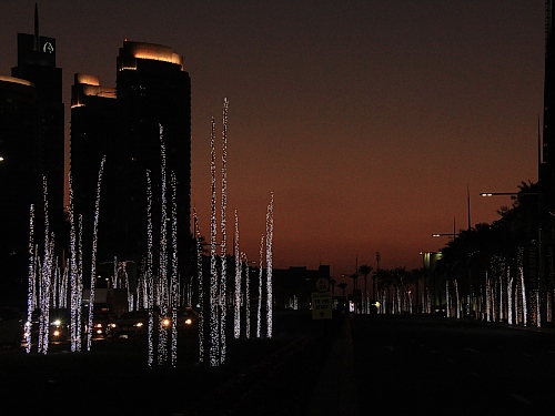 Der Morgennebel wird von Minute zu Minute dichter. Die atemberaubend schönen architektonischen Meisterwerke von Downtown Dubai verschwinden darin fast ganz. Zauberhaft mit zarten Lichterketten geschmückte Palmen sind für uns auch exotisch und damit eindrückliche Sehenswürdigkeiten. Beim ersten Kilometer-Schild, einer unübersehbaren, rechteckigen Säule, bestätigt ein Blick auf die Uhr, dass wir im richtigen Tempo unterwegs sind - 5:21 Min.